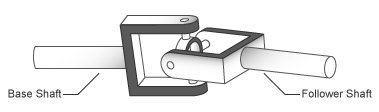 Две схемы на рисунке иллюстрируют параметры уравнения. В каждой схеме левый вал представляет базовый вал, в то время как правый вал представляет ведомый вал. На правой схеме показана муфта, показанная на левой схеме после вращения валов на 90 ° вокруг их осей длины (пунктирные отрезки линии).