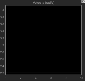Откройте блок «Область» и запустите моделирование. Две угловые скорости постоянны при 3,14 радиана/с.