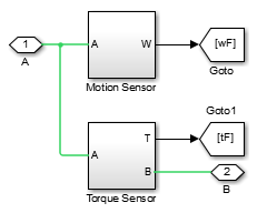 Из библиотеки Simulink перетащите область, мультиплексор и две пары блоков Goto и From. Подключите блоки, как показано на следующих рисунках. Подсистемы датчиков расположены иерархически.