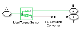 Источник идеального крутящего момента впрыскивает крутящий момент вдоль линии соединения трансмиссии или последовательно с ней. Датчик идеального крутящего момента измеряет крутящий момент, протекающий вдоль линии соединения трансмиссии или последовательно с ней.