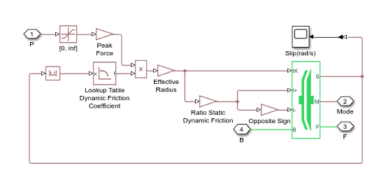 Модель в этом примере использует пользовательскую подсистему сцепления, которая содержит блок сцепления с основным трением. Блок Fundamental Friction Clutch требует более полного определения статического и кинетического трения сцепления, чем блок Disk Friction Clutch, поскольку он более подробно моделирует сцепления. См. также Модель фрикционных сцеплений на фундаментальном уровне.