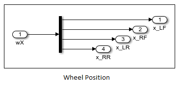 Добавление блоков Road Profile позволяет заменить систему Wheel Position гораздо более простой подсистемой Wheel Position. Новая подсистема демультиплексирует сигналы положения колеса.