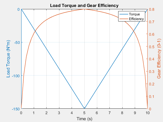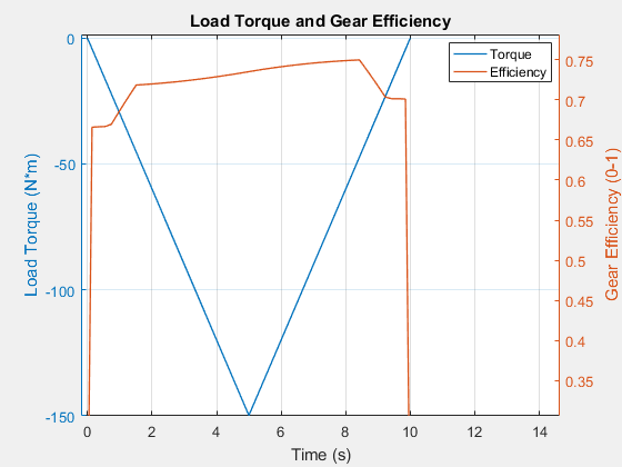 Эффективность в номинальной точке точно соответствует значениям параметров в блоке. Однако эффективность зависит только от крутящего момента. Температура не учитывается при расчете эффективности.
