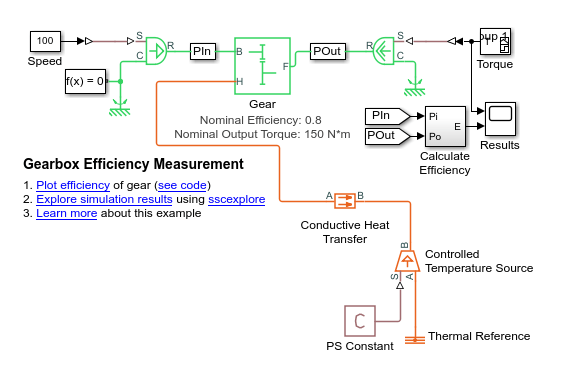 Для некоторых блоков вариант по умолчанию включает необходимые параметры для моделирования тепловой динамики. Для таких блоков размеры параметров изменяются при выборе теплового варианта. Например, чтобы параметризовать потери сетки на основе модели трения постоянной эффективности для варианта по умолчанию блока «Простая передача», задайте параметр «Эффективность», используя скалярное значение. Если для блока Простая передача (Simple Gear) выбран тепловой вариант, для задания параметра Эффективность (Efficiency) необходимо использовать векторную величину.