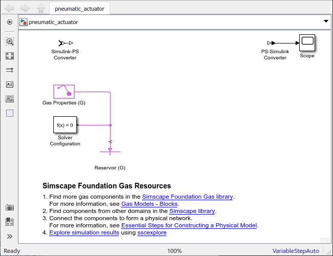 ssc_new('pneumatic_actuator','gas')создает следующую модель.