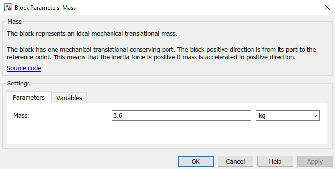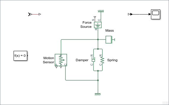 Чтобы добавить представление силы, действующей на массу, используйте блок «Источник идеальной силы».