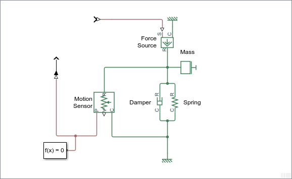 При построении сети важно включать связанные с доменом опорные блоки, такие как «Electrical Reference», «Mechanical Translational Reference» и т. д. В зависимости от области эти блоки представляют соединение с землей, полкой или атмосферой. Дополнительные сведения см. в разделе Правила заземления.
