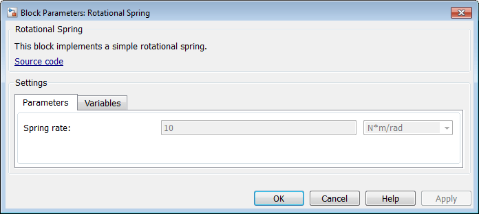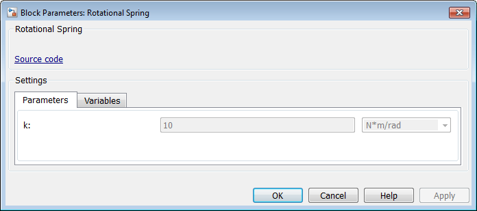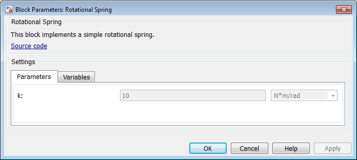 component spring %Rotational Spring % This block implements a simple rotational spring. ... end