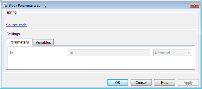 Если щелкнуть ссылку Исходный код, spring.ssc откроется в окне Редактор MATLAB ®.