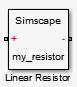 Файл Simscape, реализующий такой линейный резистор, может выглядеть следующим образом: