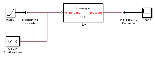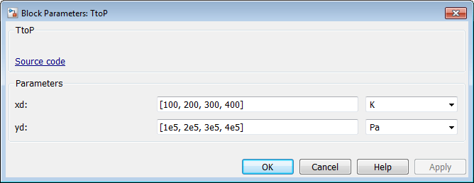 В следующем примере выполняется сопоставление температуры и давления с помощью одномерной таблицы поиска.