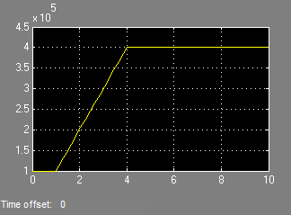 Компонент TtoP использует линейную интерполяцию для значений в пределах табличного диапазона, но выводит ближайшее значение yd для входных значений вне диапазона. На следующей иллюстрации показана блок-схема, где используется пользовательский блок TtoP с линейным входным сигналом, изменяющимся от 0 до 1000, и результирующим выходным сигналом.