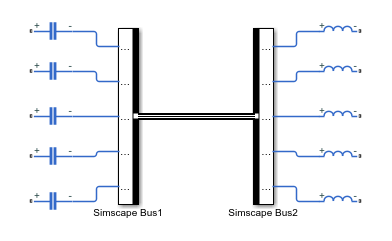 Блок Simscape Bus объединяет соединения в линию Simscape Bus. Этот блок можно также использовать для доступа к одному или нескольким соединениям из существующей линии шины Simscape. Физические линии связи являются неориентированными, поэтому блок может служить как создателем шины, так и селектором шины. Обычно модель имеет два блока Simscape Bus, обращенных друг к другу, с подключенными портами шины.