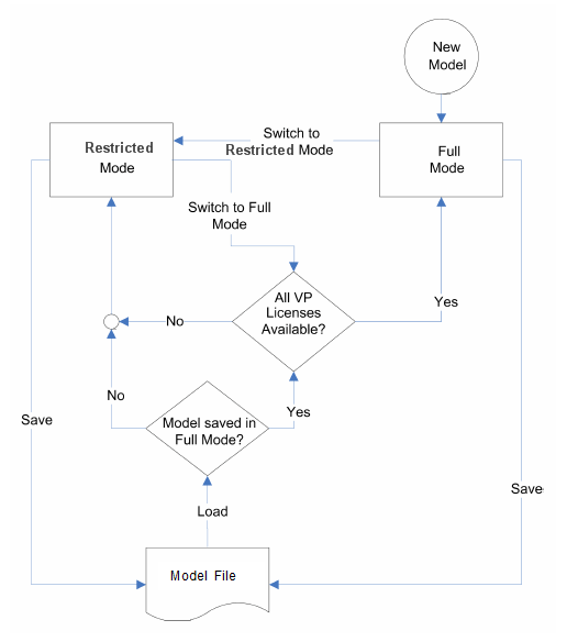 При загрузке существующей модели диспетчер лицензий проверяет, была ли она сохранена в режиме полного или ограниченного доступа.