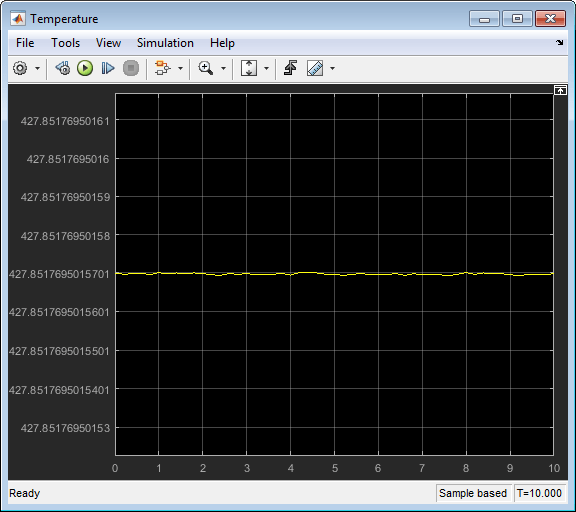 Температура выше по потоку от ограничителя составляет приблизительно 427 К, а не 400 К (как определено блоком резервуара выше по потоку).