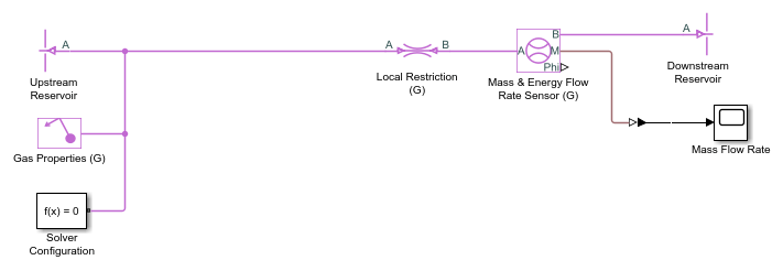 В учебном пособии «Простая газовая модель» была создана простая газовая модель с разомкнутым контуром. В этом примере показано, как изменить эту модель путем изменения граничных условий потока газа без влияния на температуру. Чтобы открыть законченную модель, в окне команд MATLAB ® введитеssc_gas_tutorial_step2.