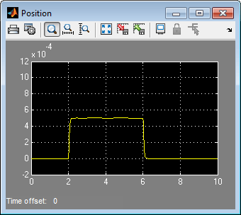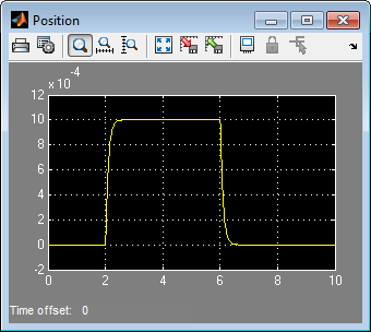 В нашей модели мы использовали блок PS-Simulink Converter в конфигурации параметров по умолчанию. Следовательно, Position область действия выводит смещение массы в единицах длины по умолчанию, то есть в метрах. В этом примере показано, как изменить выходные единицы для массового смещения на миллиметры.