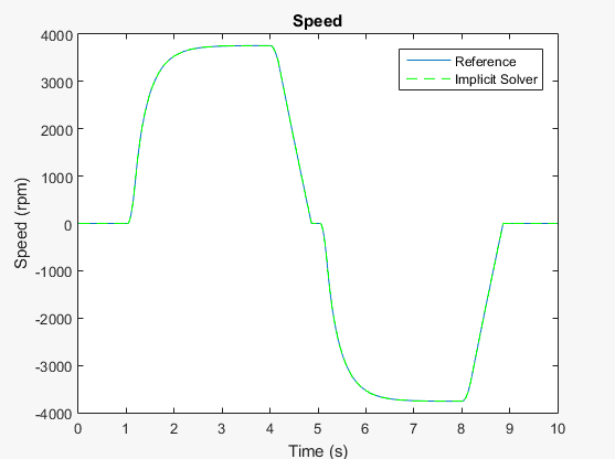 h1 hold on stairs(tOde14x,yOde14x,'g--') h1Leg = legend({'Reference','Implicit Solver'});
