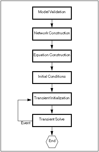 Если установившееся решение успешно, найденное состояние является некоторым установившимся состоянием (в пределах допуска), но не обязательно состоянием, ожидаемым из заданных начальных условий. Затем моделирование начинается с этого устойчивого состояния.