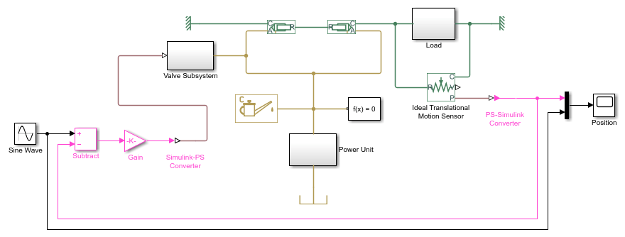 Блоки Simscape можно размещать в нефиртуальных подсистемах, поддерживающих непрерывные состояния. К невиртуальным подсистемам, поддерживающим непрерывные состояния, относятся подсистемы Enabled и Atomic. Однако физические соединения и физические сигналы не должны пересекать невиртуальных границ. При размещении блоков Simscape в невиртуальной подсистеме убедитесь, что все блоки, принадлежащие данной физической сети, помещены в одну и ту же невиртуальную подсистему.