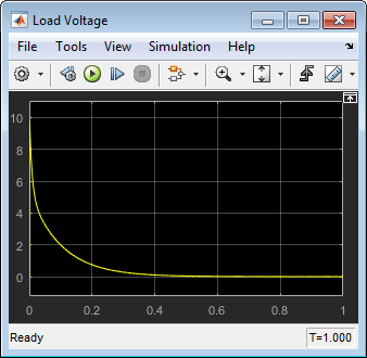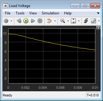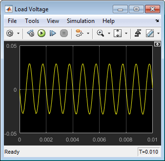 Откройте блок Конфигурация решателя (Solver Configuration), установите флажок Начать моделирование из устойчивого состояния (Start simulation from steading state) (как это было при первом открытии модели) и нажмите кнопку OK. Измените время моделирования обратно на .01 s и запустите моделирование повторно.