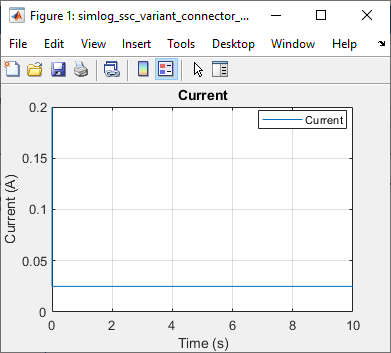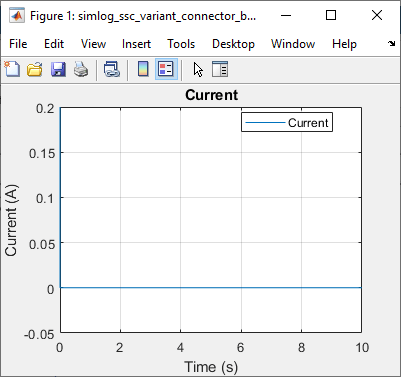 Чтобы просмотреть поток текущих данных в этом сценарии, дважды щелкните блок «Область» с именем Current. Либо в модели щелкните ссылку Печать (Plot) в таблице Вариант (Variant) Ограниченная область (Bounded Region) в электрической цепи (Electrical Circuit), которая соответствует условию. A == 1 является true и B == 1 является false.