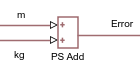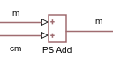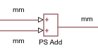 Блоки сложения и вычитания PS выполняют сложение и вычитание двух входных сигналов, и, следовательно, физические сигнальные блоки на двух входных портах этих блоков должны быть соизмеримыми. Если два входных сигнала имеют один и тот же блок, то блок выходных сигналов также имеет этот блок. Если единицы входного сигнала соизмеримы, то единица выходного сигнала является основной единицей для этого размера.