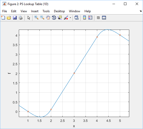 Можно распечатать данные таблицы поиска, указанные для блоков «Таблица поиска PS» (1D) и «Таблица поиска PS» (2D) в модели. Печать таблиц позволяет визуализировать данные перед моделированием модели, чтобы убедиться в правильности таблицы. Графики отражают табличные данные, заданные для блока, а также выбранные опции интерполяции и экстраполяции.