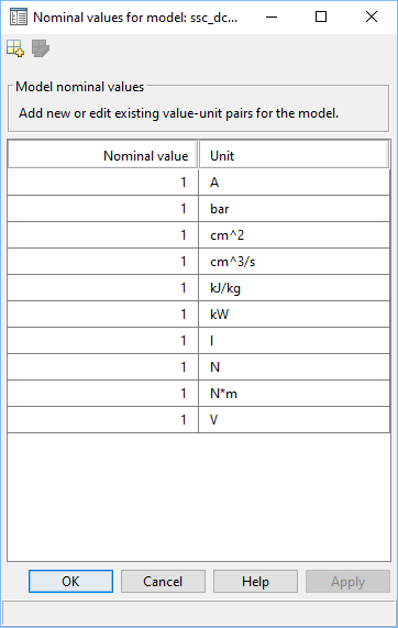 Таблица номинальных значений модели откроется в новом окне. Он содержит все пары «значение-единица», определенные в настоящее время для модели.