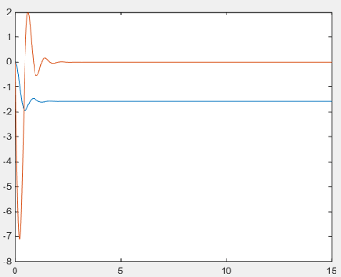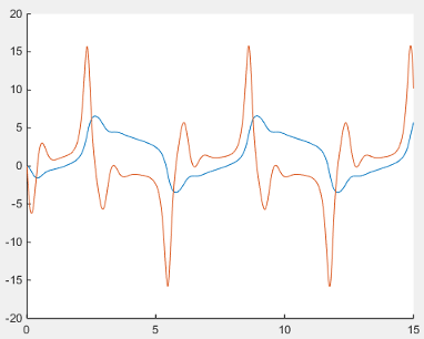 figure; % Open a new figure hold on; plot(q); % Plot the pendulum angle plot(w); % Plot the pendulum angular velocity