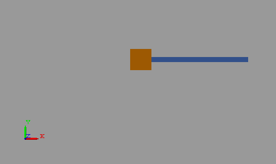 Блок вращения соединения использует общую ось Z опорной и ведомой рам в качестве оси вращения соединения. Чтобы маятник колебался под действием силы тяжести, измените вектор тяжести, чтобы он больше не выравнивался с осью Z. Для этого в диалоговом окне Блок конфигурации механизма (Mechanism Configuration block) задайте для параметра Равномерная сила тяжести (Uniform Gravity) > Сила тяжести (Gravity) значение [0 -9.81 0].