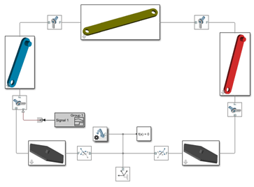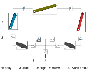 В своей основе многожильная система представляет собой набор тел, связанных через соединения и связанных кинематическими зависимостями, такими как шестерни. Силы и крутящие моменты различных типов позволяют приводить в действие различные тела, а датчики - воспринимать результирующее движение. В программном обеспечении Simscape™ Multibody™ блоки используются для непосредственного представления этих компонентов.