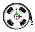 Катушка служит в качестве интерфейса между областью ремень-кабель, характерной для систем шкивов, и областью рамы, общей для всех других компонентов корпуса. Порт (А) ременного кабеля идентифицирует кончик шнура, который должен наматываться на катушку, и относительное расположение этого кончика в системе шкива. Порт кадра (R) идентифицирует опорную рамку катушки и ее размещение в более широкой многофюзеляжной модели.