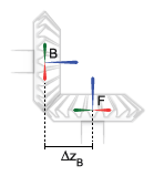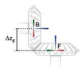 Расстояние между базовой и ведомой рамой по оси Z ведомой рамы, обозначенное ΔzF, должно быть равно: