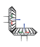 Воображаемые линии, отходящие от оси z основания и толкателя, должны пересекаться под углом вала, заданным в диалоговом окне блока. На чертеже угол обозначен В-F. Если для параметра «Оси вала» установлено значение Perpendicular, угол 90 °.