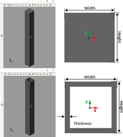 Thickness - Толщина стенки полого сеченияm (по умолчанию) | положительный скалярТолщина стенки полого сечения. Этот параметр определяет расстояние между внутренней и внешней поверхностями балки.