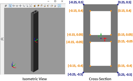 Используйте матрицу N-by-2 с координатами xy для задания просто связанного сечения. Каждая строка дает координаты [x, y] точки на границе поперечного сечения. Точки соединяются в порядке, заданном для формирования замкнутой полилинии. Для обеспечения замкнутости полилинии между последней и первой точками всегда вставляется сегмент линии.