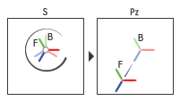 Вдоль оси Z базовой рамки Z Prismatic Primitive (Pz). Этот кадр совпадает с последовательным кадром сферического примитива (S).