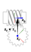 Оси Z базовой и ведомой рам должны быть перпендикулярны друг другу. Оси Z показаны синим цветом на рисунке.