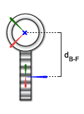 Расстояние между z-осями основания и рамы толкателя, обозначенное на рисунке dB-F, должно быть равно расстоянию между центрами зубчатых колес.