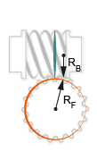 Зависимость реечной передачи параметризуется с точки зрения размеров кругов червяка и шага зубчатой передачи. Окружности шага представляют собой воображаемые окружности, концентричные телам червяка и шестерни и касательные к точке контакта резьбы. Радиусы шага, помеченные RB и RF на чертеже - радиусы, которые имели бы червяк и шестерня, если бы они были сведены к фрикционным цилиндрам во взаимном контакте.