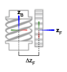 Поступательное смещение между базовой и ведомой рамками вдоль z-оси ведомой рамы, обозначенной на рисунке как ΔZF, должно быть равно нулю.