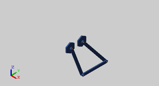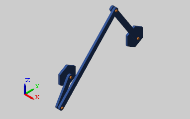 Ссылки обычно имеют сложные формы. Это особенно относится к наземному звену, которое может быть просто приспособлением, удерживающим две поворотные опоры, которые соединяются с коленчатыми или коромысловыми звеньями. В качестве жесткого пролета между двумя соседними вращающимися соединениями можно определить связи со сложными формами. В примере Модель кинематической цепи с замкнутым контуром жесткий пролет между двумя поворотными опорами представляет звено заземления.
