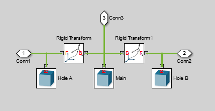 Под маской блока Binary Link B подключите третий блок Outport, как показано на рисунке. Блок «Исходящий» можно добавить путем копирования и вставки Conn1 или Conn2. Новый блок определяет кадр, траектория которого выводится на печать в данном учебном пособии.