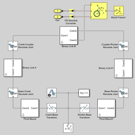 endСохраните сценарий как sim_four_bar в папке, содержащей четырехполосную модель.