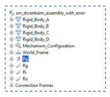 На панели визуализации Mechanics Explorer проверьте положение и ориентацию выделенных кадров. Это рамки, которые выглядят в светло-бирюзово-синем цвете.