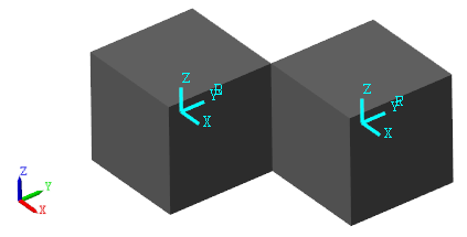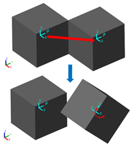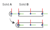 Если две геометрии отличаются друг от друга или если их положения и ориентации относительно их опорных рамок отличаются друг от друга, то совпадение опорных рамок приведет к смещению твердотельных геометрий. На рисунке соединение каркаса тела А с левым каркасом тела В соединяет тела таким образом, что их геометрия смещается относительно друг друга.