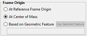 Твердотельный блок обеспечивает интерфейс создания фреймов, который можно использовать для создания новых пользовательских фреймов. Пользовательский каркас можно позиционировать и ориентировать с помощью геометрических элементов, таких как вершины, кромки и грани. С точки зрения инерции удобнее сделать то же самое с помощью центра масс и трех главных осей твердого тела.