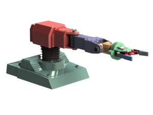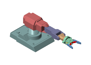 В этом примере показано, как создать модель Simscape™ Multibody™ из XML-файла описания нескольких тел с помощью smimport функция. Пример основан на файле описания множества тел с именем sm_robot и наборе файлов геометрии деталей, включенных в установку Simscape Multibody. Эти файлы описывают роботизированную модель руки, показанную на рисунке.