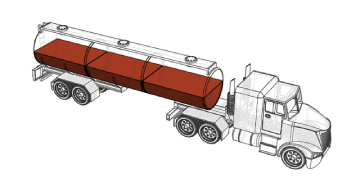 Переменные инерции, связанные с блоками общей переменной массы, не имеют геометрии. Необходимо визуализировать эти инерции как графические маркеры или как эквивалентные эллипсоиды инерции. Размеры эллипсоидов и центр геометрии изменяются в зависимости от массы, центра масс и тензора инерции, что делает эллипсоиды более информативными для визуализации модели. Маркеры инерции отображаются при обновлении модели и во время моделирования. Эллипсоиды переменной инерции отображаются только во время моделирования. На чертеже показана инерционная визуализация, представляющая нагрузку жидкости, переносимую автоцистерной.